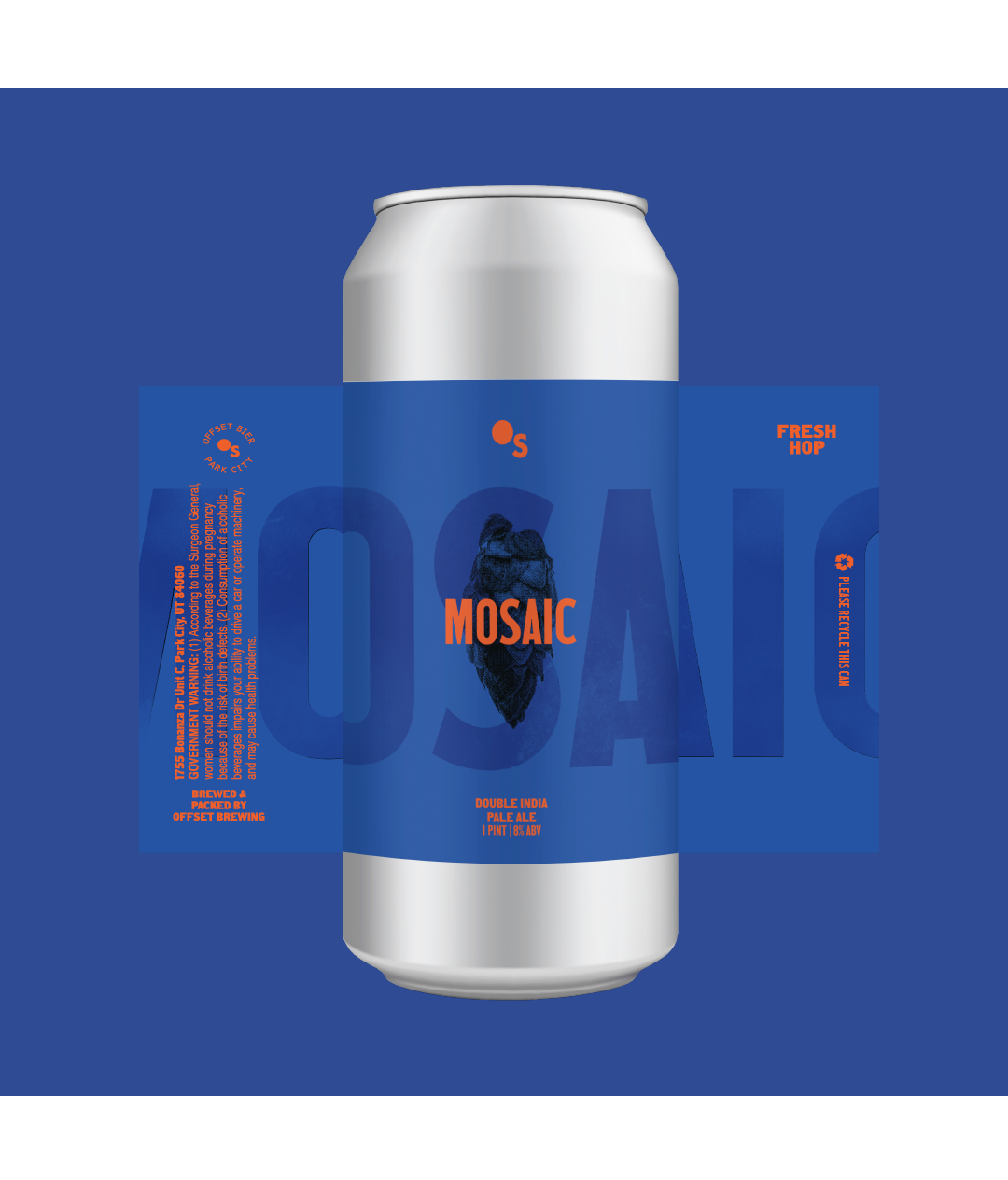 Hops: 22 Mosaic T-90 Pellets, 23 Wet Hop Mosaic Cones, 23 Freshly Kilned Whole Leaf
